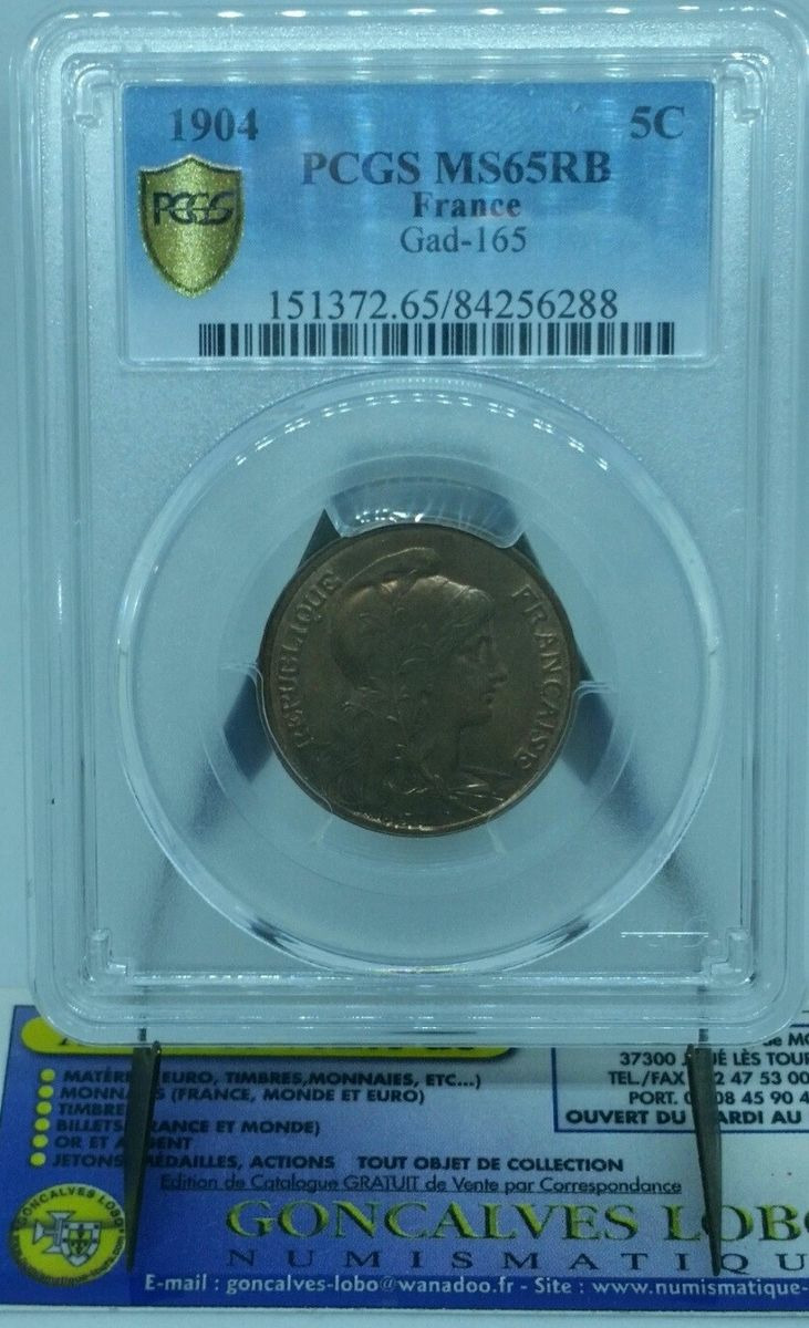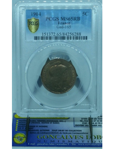 5 CENTIMES DUPUIS 1904 PCGS MS 65 RB (FDC)