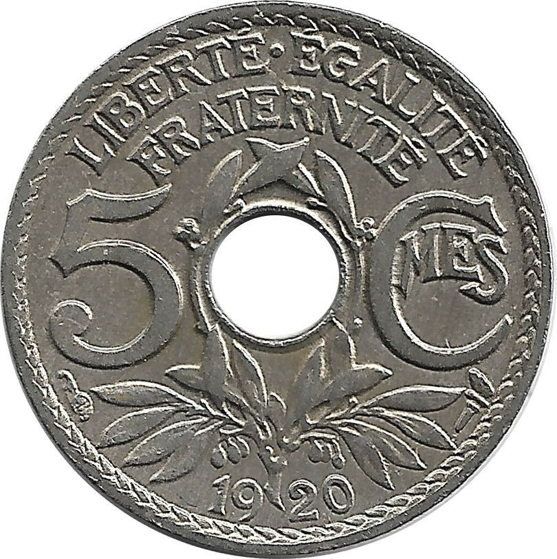 FRANCE 5 CENTIMES LINDAUER petit module 1920 TTB