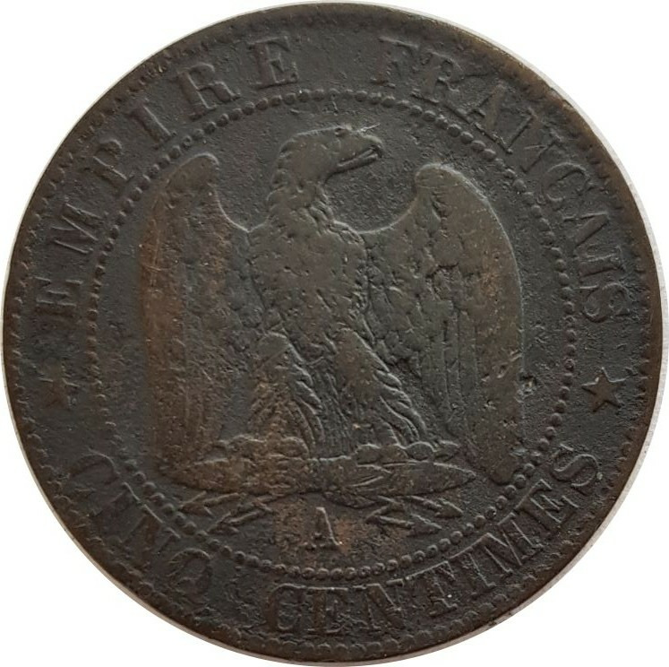 FRANCE 5 CENTIMES NAPOLEON III 1854 A (Paris) main TB+