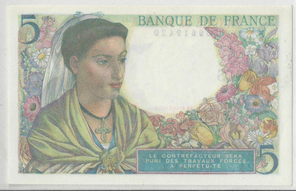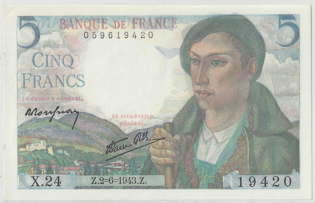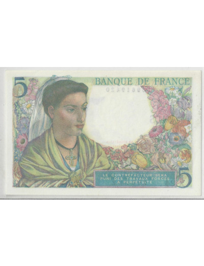 FRANCE 5 FRANCS BERGER X. 24 02/06/1943 NEUF