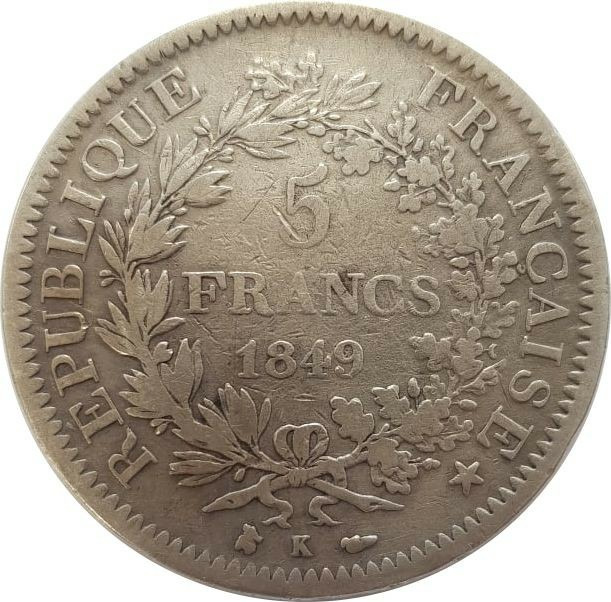 FRANCE 5 FRANCS HERCULE 1849 K (Bordeaux) TB+