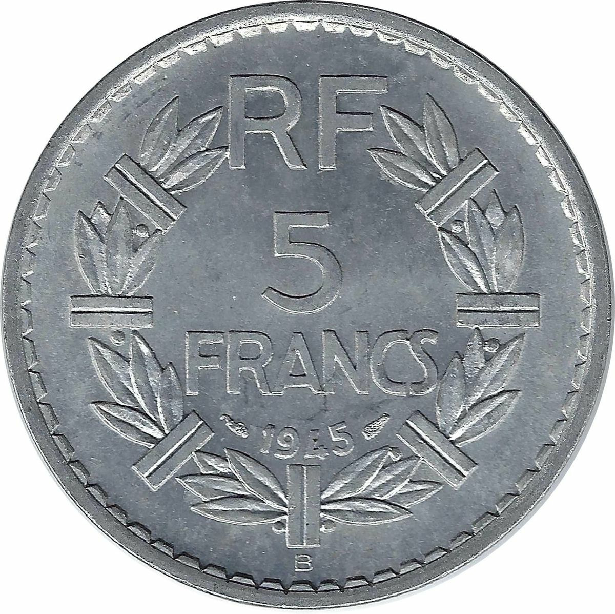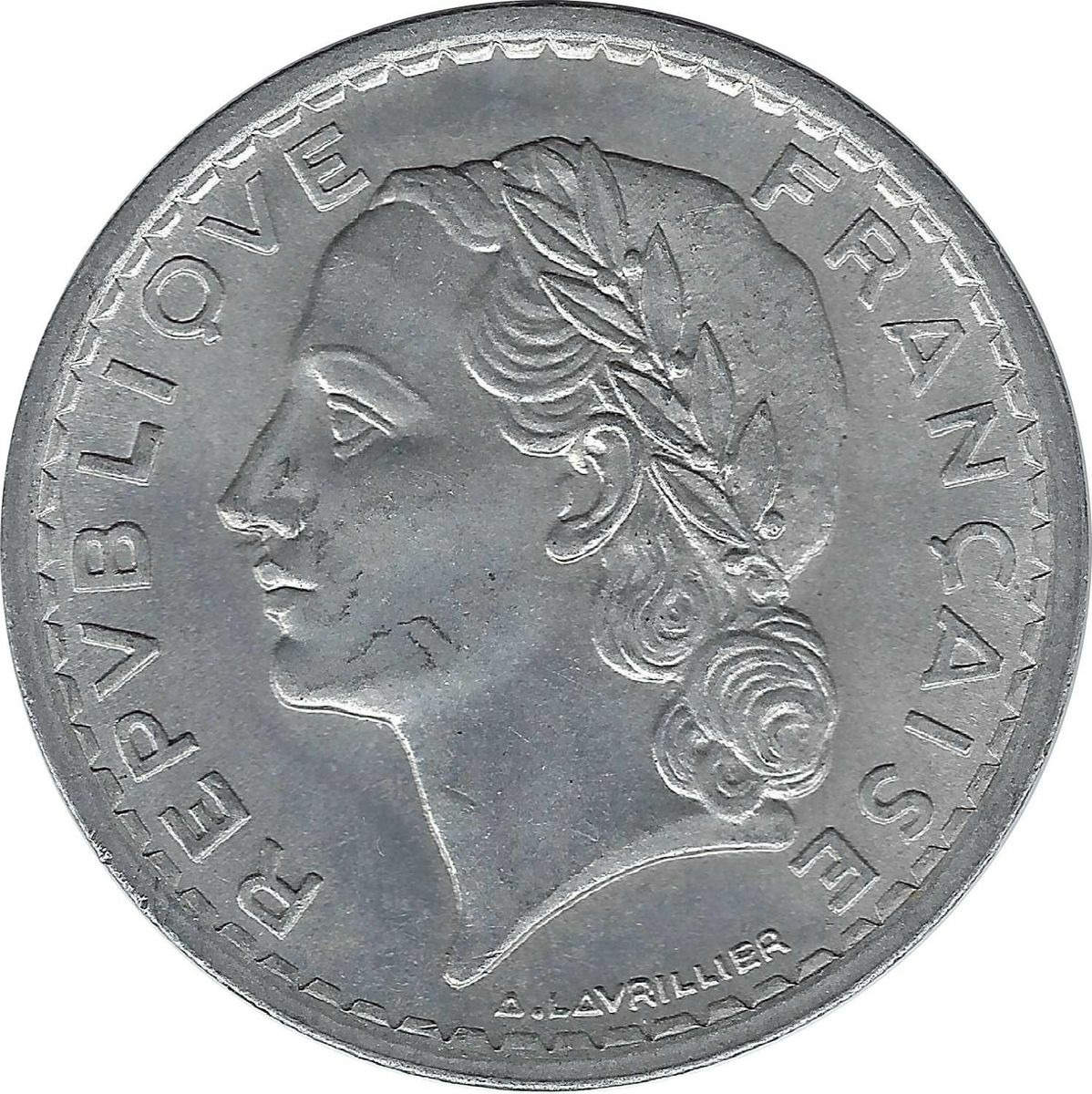 FRANCE 5 FRANCS LAVRILLIER Aluminium 1945 B TTB+