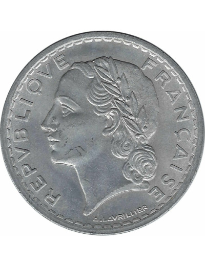 FRANCE 5 FRANCS LAVRILLIER Aluminium 1945 B TTB+ N2