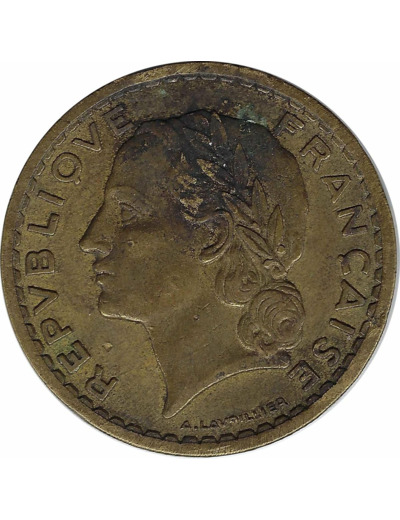 FRANCE 5 FRANCS LAVRILLIER CUPRO ALU 1946 TB+ coup sur tranche