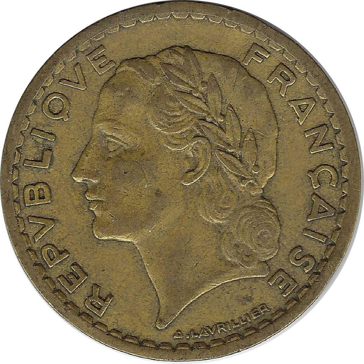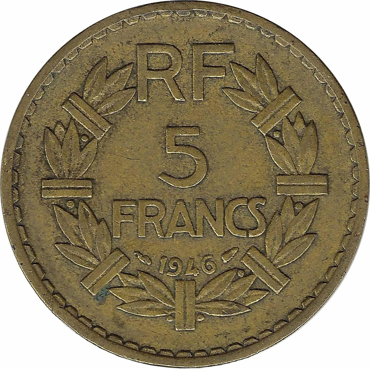 FRANCE 5 FRANCS LAVRILLIER CUPRO ALU 1946 TB+ taches