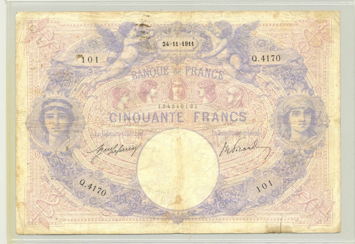 FRANCE 50 FRANCS SERIE Q.4170 BLEU ET ROSE 24 11 1911 TB