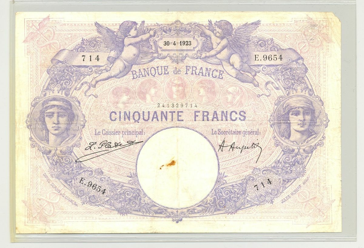FRANCE 50 FRANCS SERIE E.9654 BLEU ET ROSE 30 04 1923 TB+