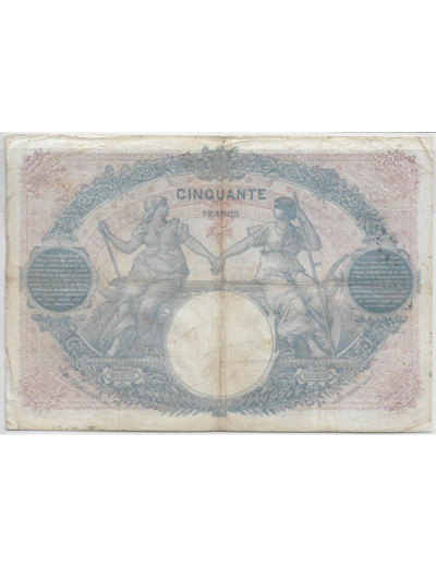 FRANCE 50 FRANCS BLEU ET ROSE SERIE A.8877 22-2-1921 TB+