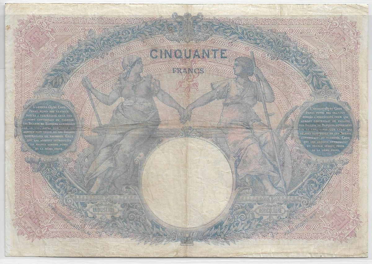 FRANCE 50 FRANCS BLEU ET ROSE SERIE E.5265 4-6-1914 TB+