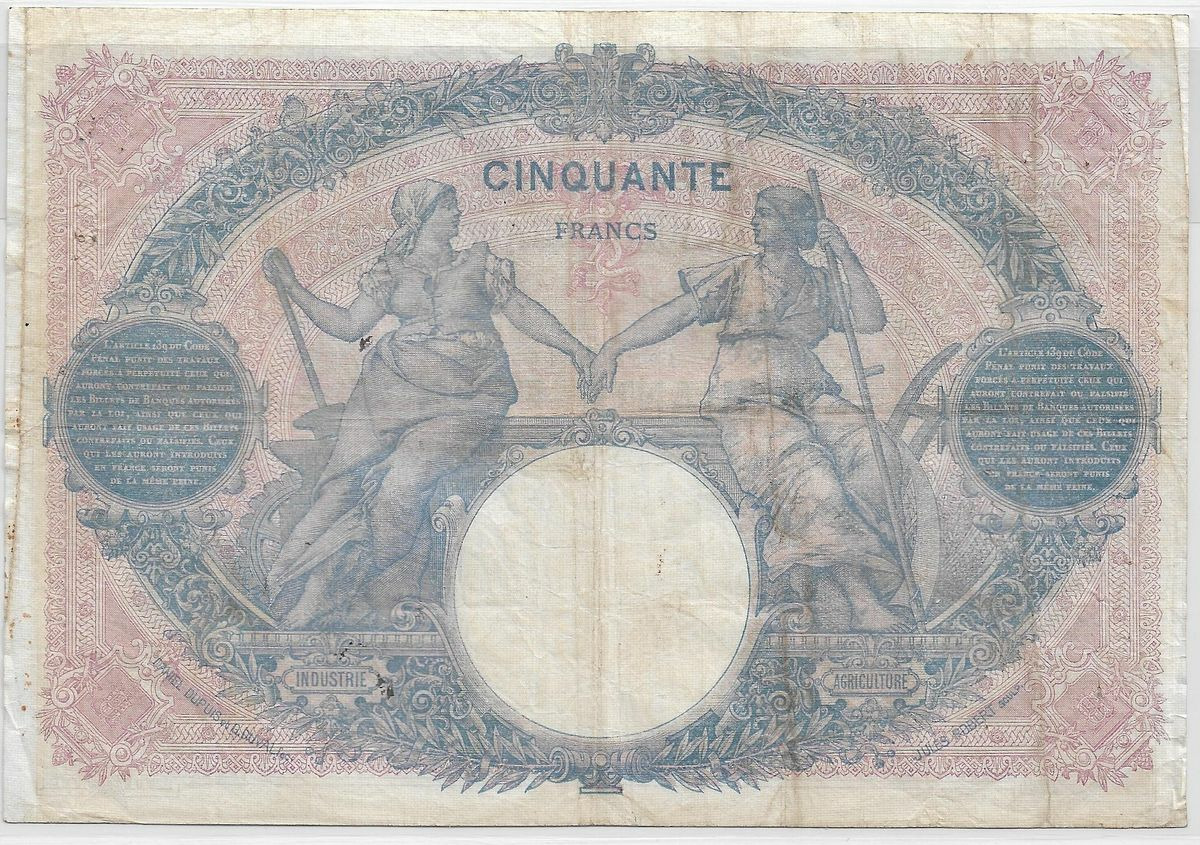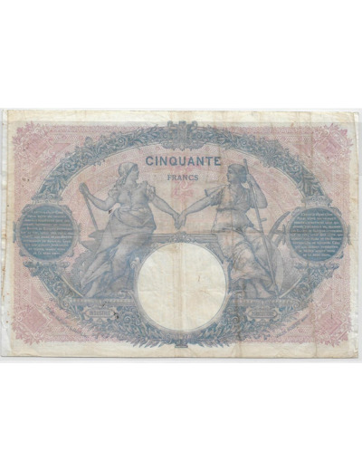 FRANCE 50 FRANCS BLEU ET ROSE SERIE H.7812 22-12-1917 TB+