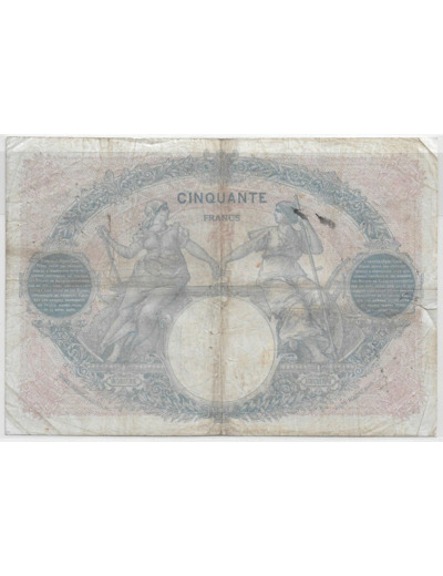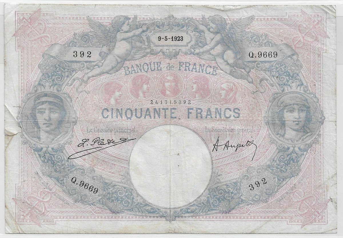 FRANCE 50 FRANCS BLEU ET ROSE SERIE Q.9669 9-5-1923 TB+