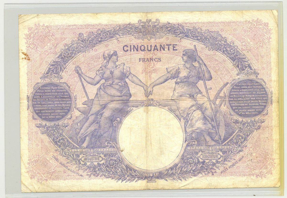 FRANCE 50 FRANCS SERIE F.8268 BLEU ET ROSE15 02 1919 TB+