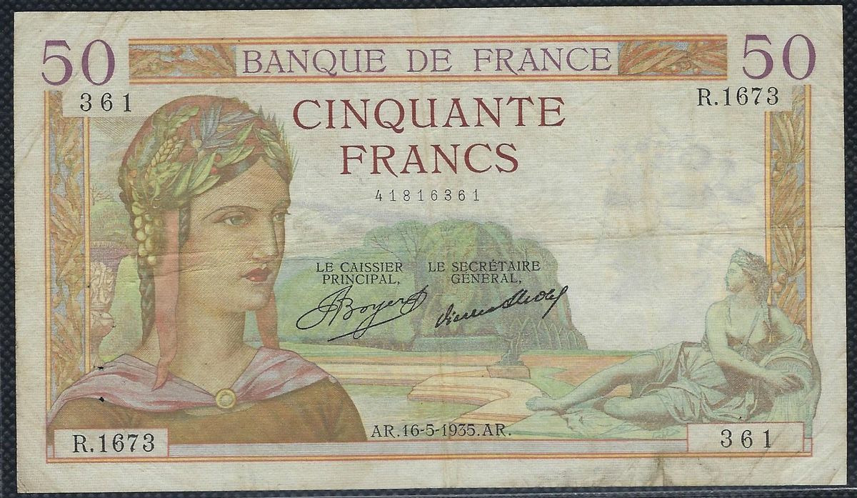 FRANCE 50 FRANCS CERES 16-5-1935 R.1673 TB+
