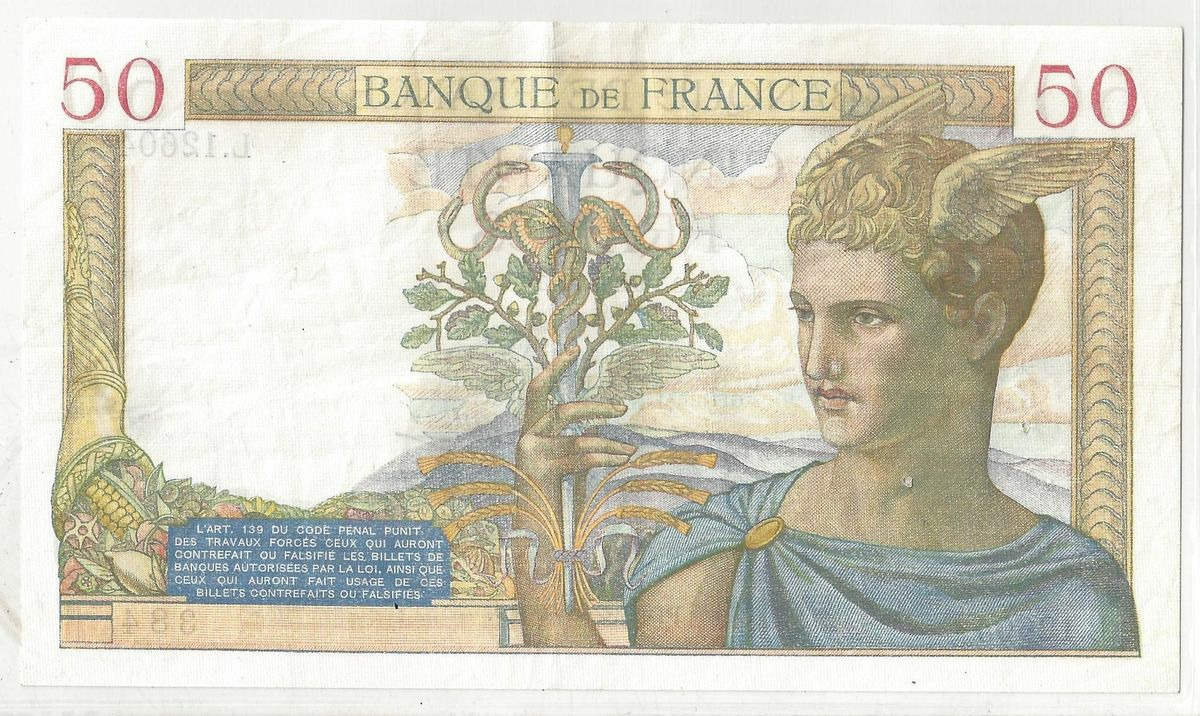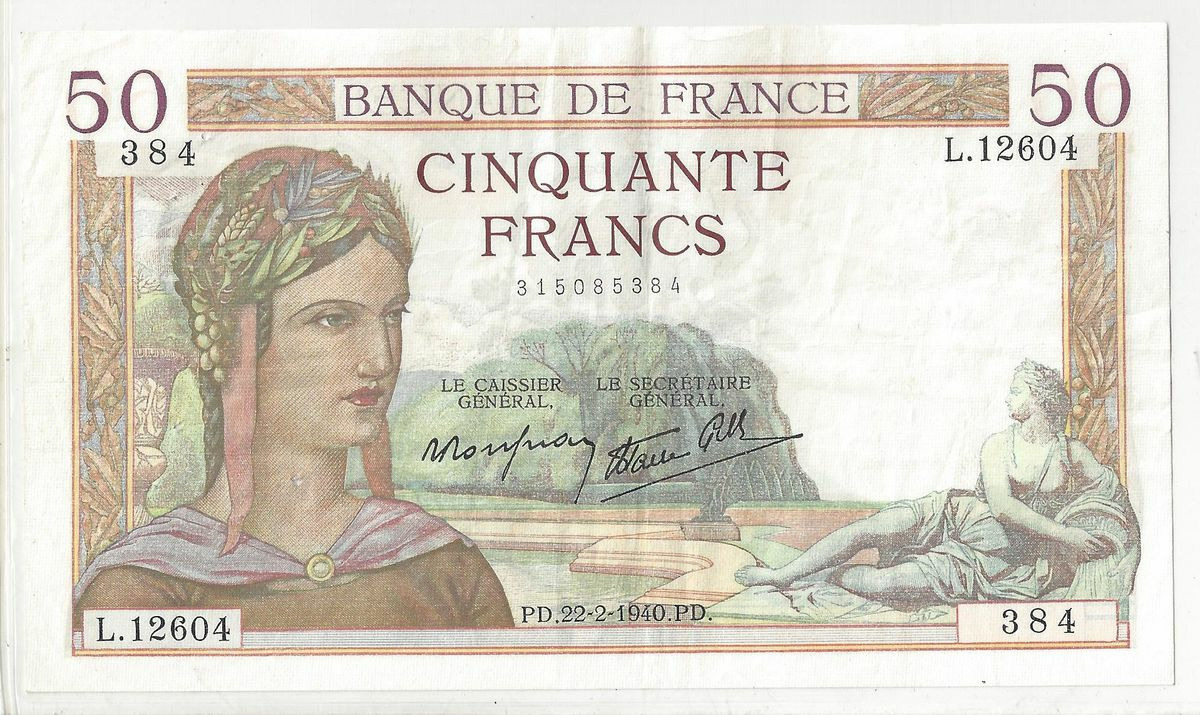 FRANCE 50 FRANCS CERES 22/02/1940 TTB+ L.12604