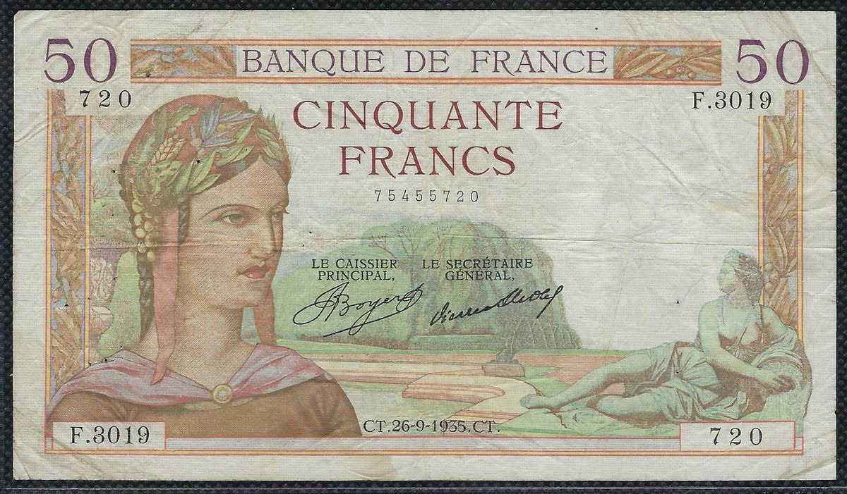 FRANCE 50 FRANCS CERES 26-9-1935 F.3019 TB+