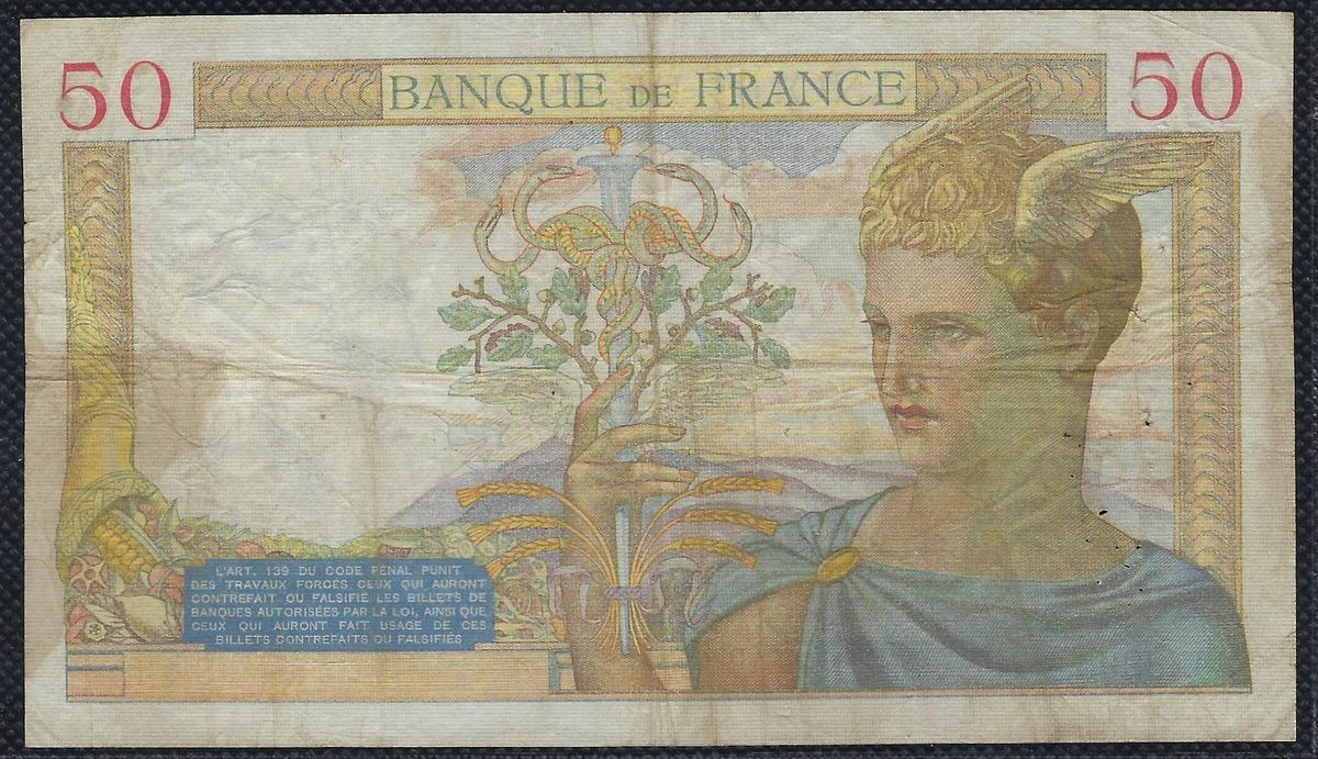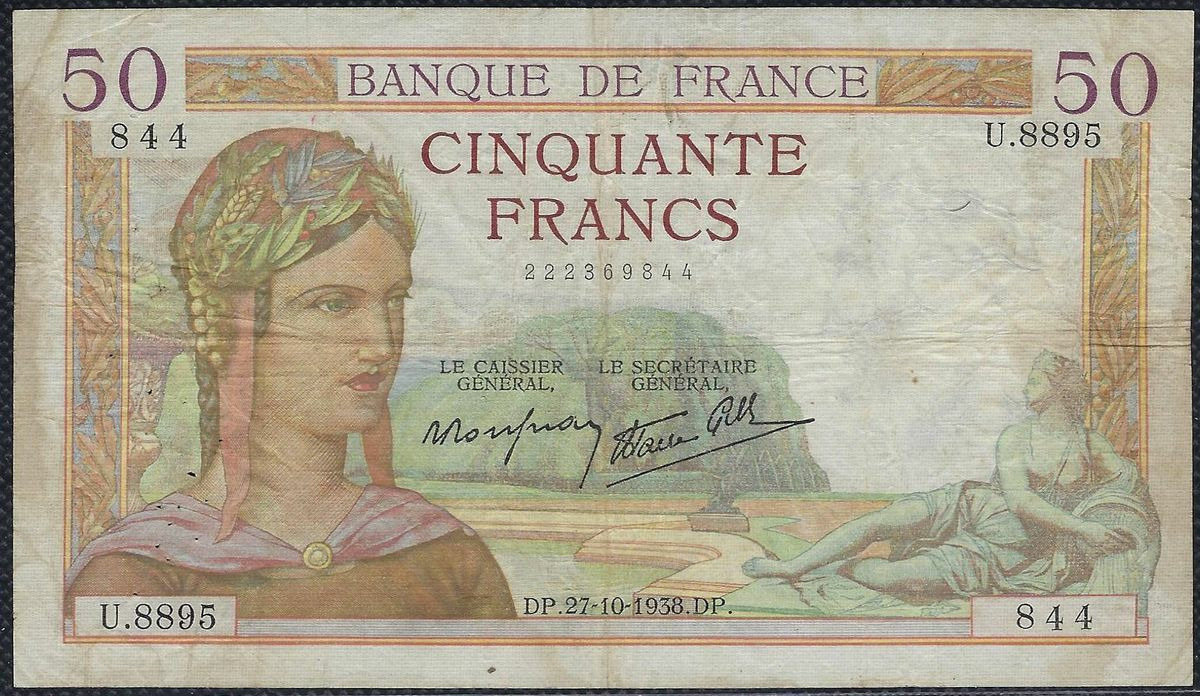 FRANCE 50 FRANCS CERES 27-10-1938 U.8895 TB+
