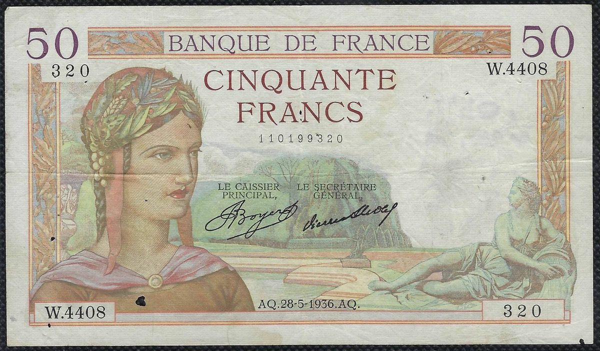 FRANCE 50 FRANCS CERES 28-5-1936 W.4408 TB