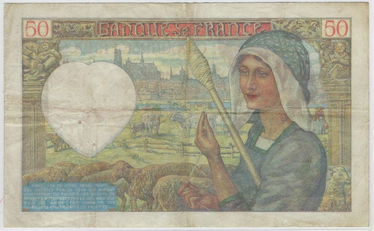 FRANCE 50 FRANCS JACQUES COEUR 13-6-1940 SERIE T.5 TTB