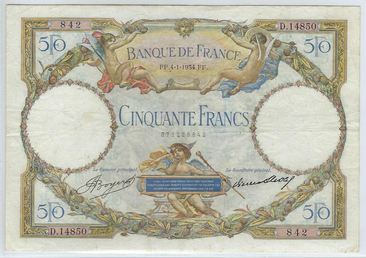 FRANCE 50 FRANCS L.O.M 4-1-1934 D.14850 TTB