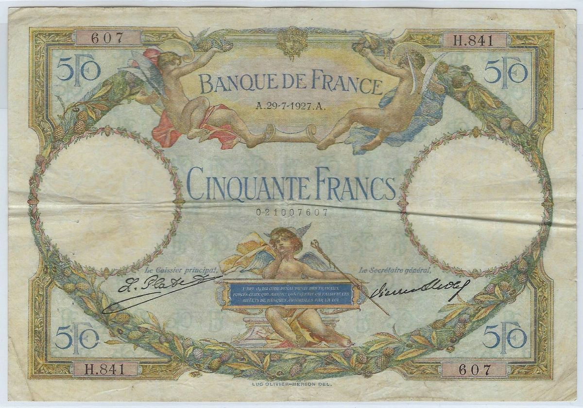 FRANCE 50 FRANCS L.O. MERSON SERIE H.841 29-7-1927 TTB