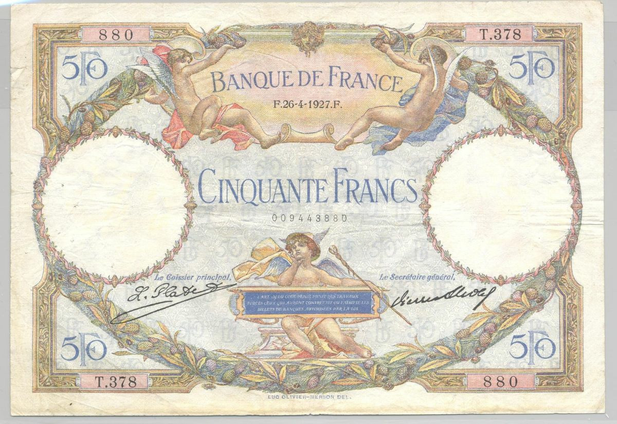 FRANCE 50 FRANCS L.O. MERSON SERIE Y.378 26-4-1927 TTB