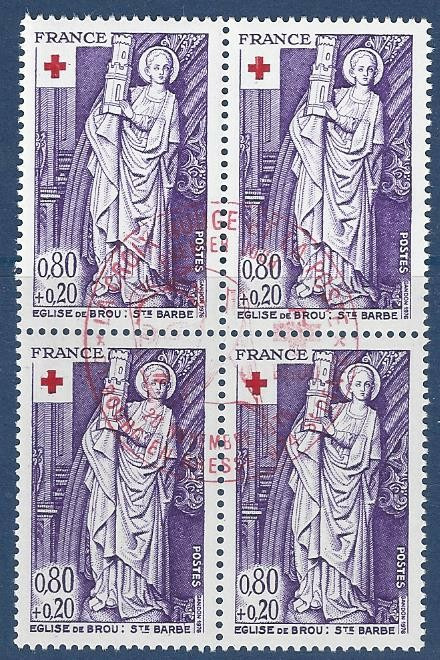 FRANCE BLOC 4 TIMBRES croix rouge 1976 Yvert 1910 Neuf mais OBLITERE 1er Jour