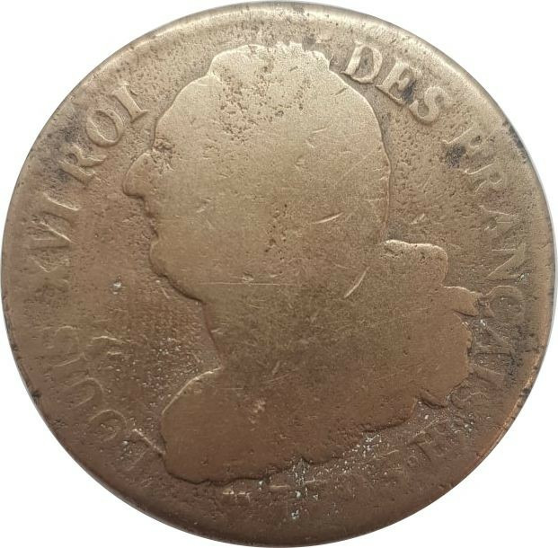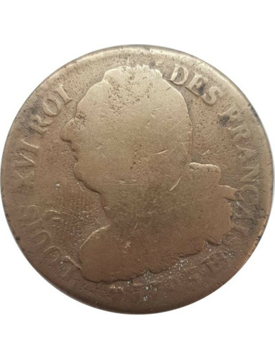FRANCE LOUIS XVI 2 SOLS FRANÇAIS 1793 An 5 BB (Strasbourg) 20gr33 B+ nettoyée