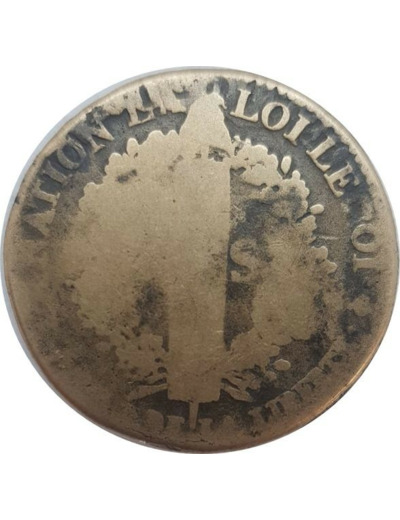 FRANCE LOUIS XVI 2 SOLS FRANÇOIS 1791 .A. (Paris) 22gr37 B contremarquée