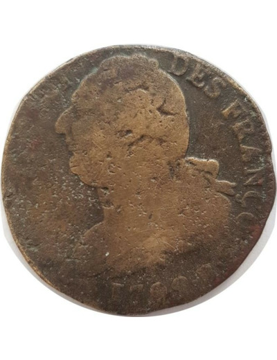 FRANCE LOUIS XVI 2 SOLS FRANÇOIS 1792 B (Rouen) B-