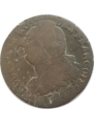 FRANCE LOUIS XVI 2 SOLS FRANÇOIS 1792 R (Orléans) B