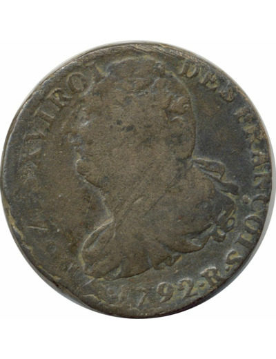 FRANCE LOUIS XVI 2 SOLS FRANÇOIS 1792 R (Orléans) B+