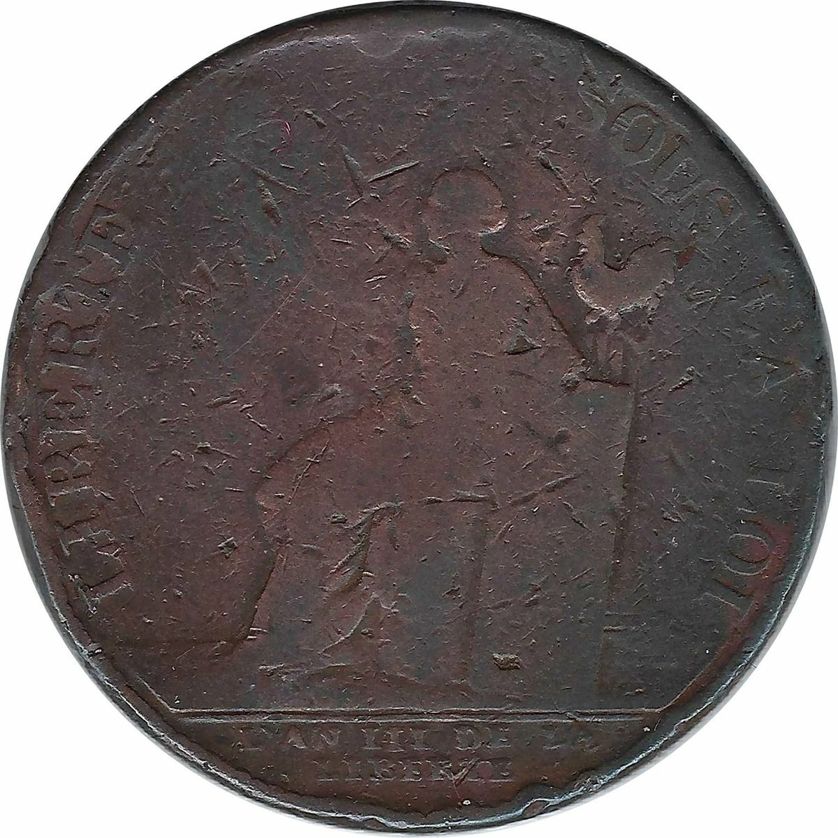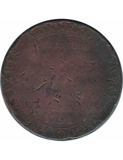 FRANCE MONNERON 2 SOLS à la LIBERTE 1791 AN III MONNAIE de CONFIANCE B