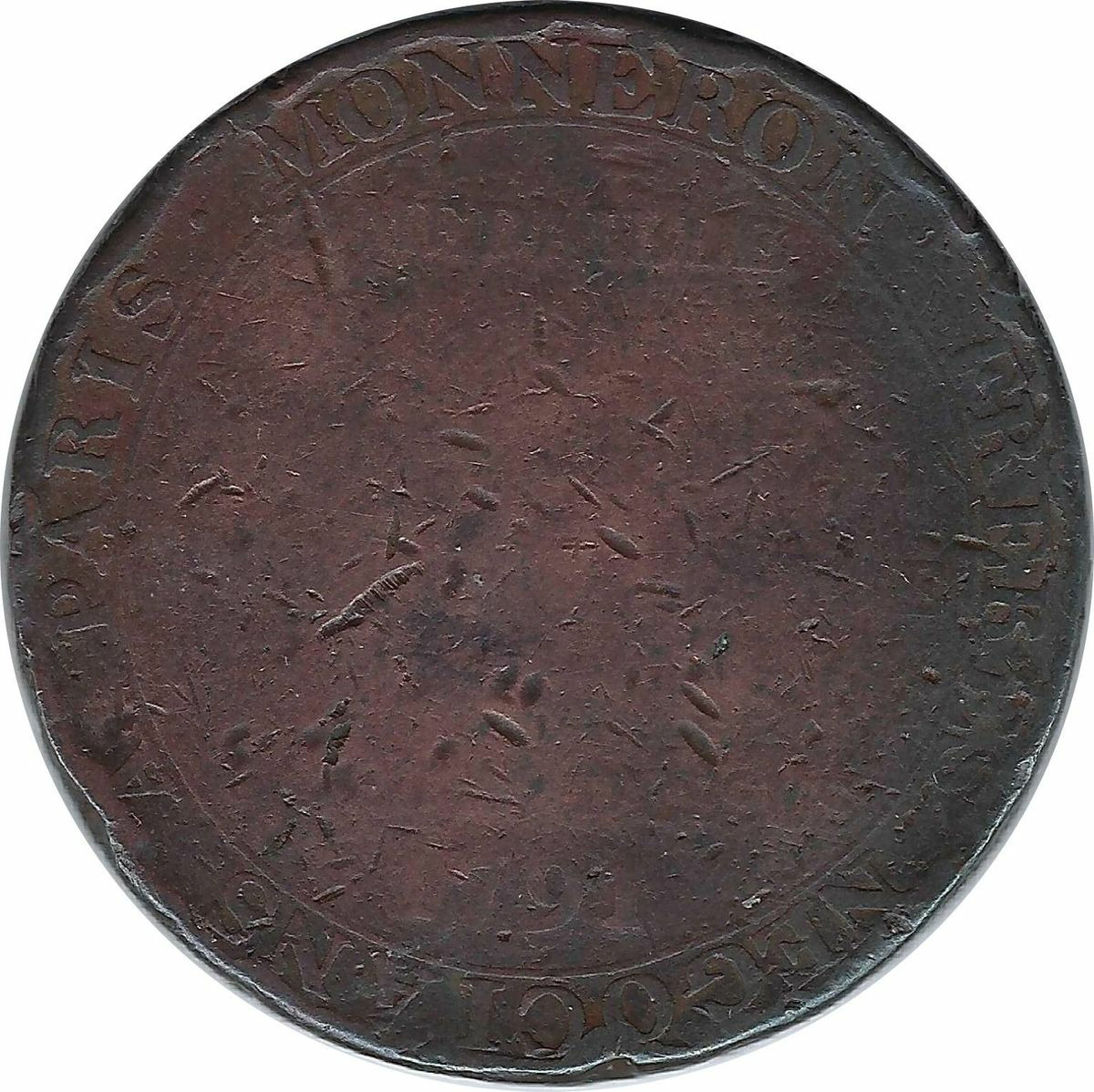 R: MEDAILLE (DE CONFIANCE DE DEUX SOLSA ECHANGER CONTRE DES ASSIGNATS DE 50 ET AU DESSUS) 1791