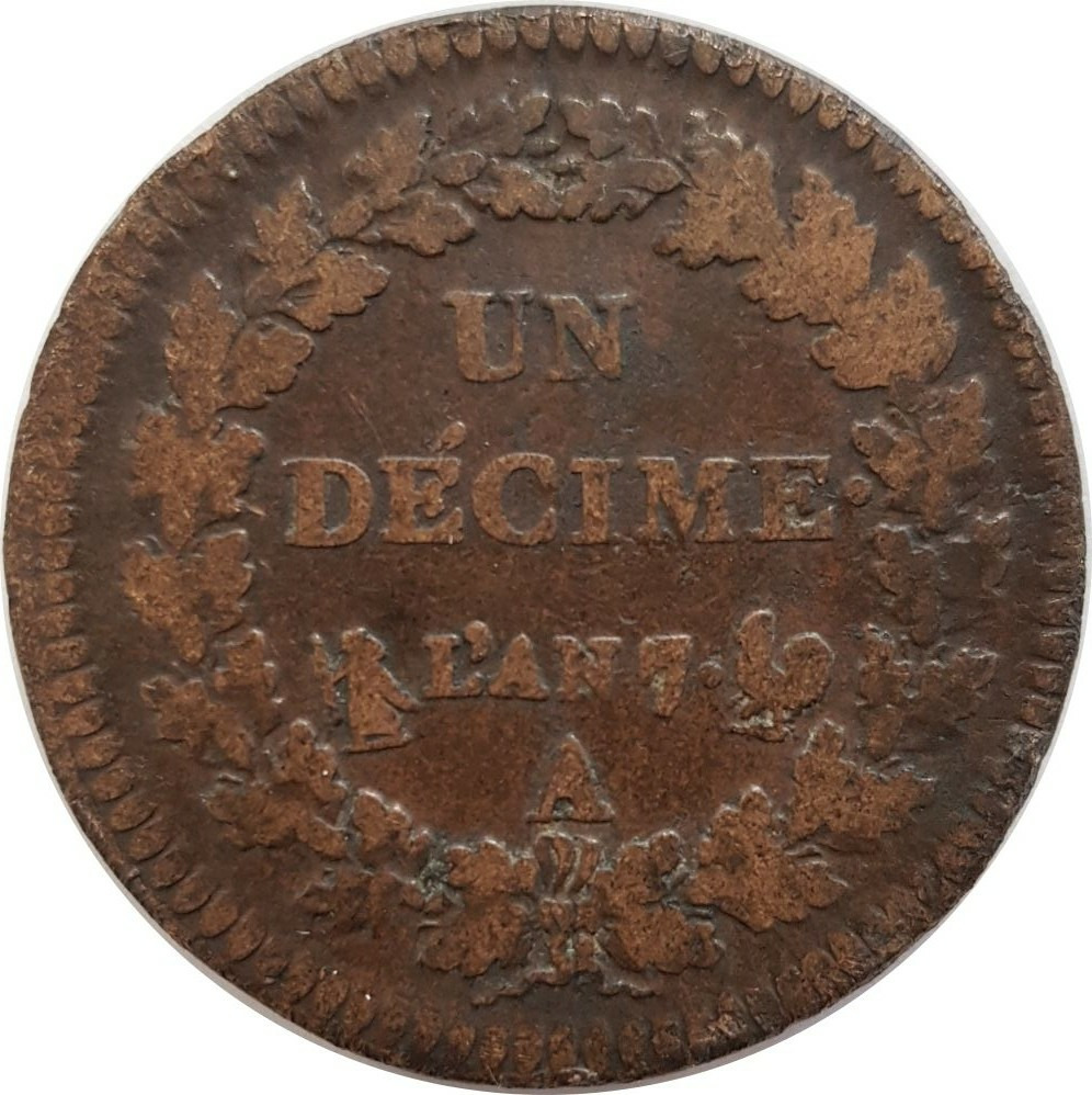 FRANCE UN DECIME AN 7 A (Paris) 7/5 A/A COQ/CORNE TB+