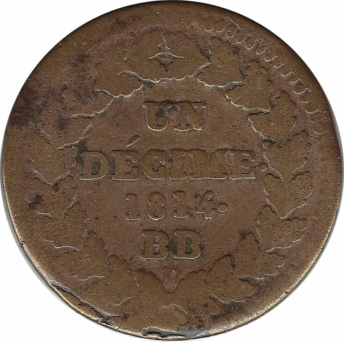 FRANCE UN DECIME LOUIS XVIII 1814 BB (G196a) TB