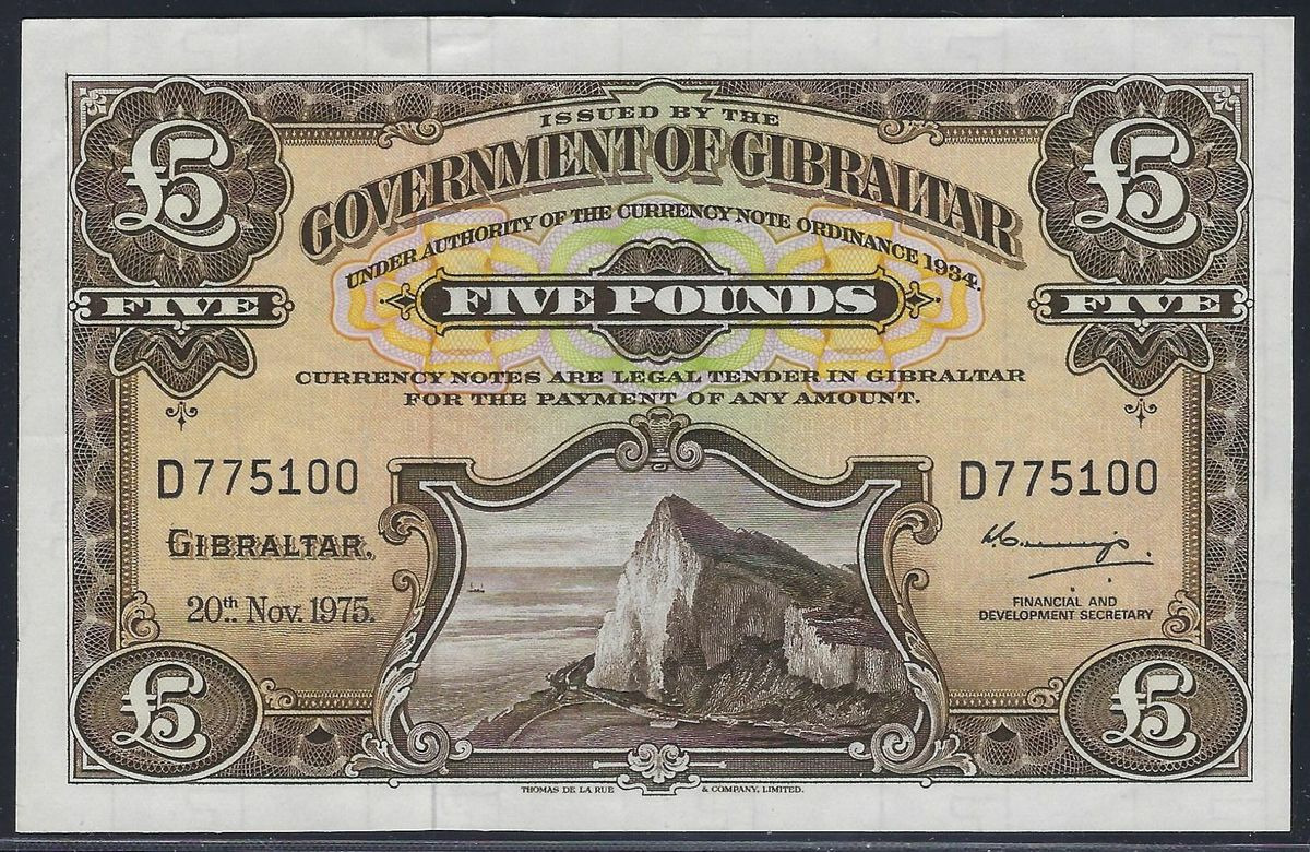GIBRALTAR 5 POUNDS 20 NOVEMBRE 1975 SERIE D SUP