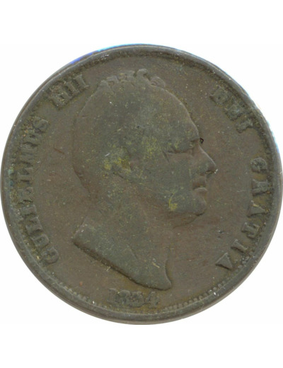 GRANDE BRETAGNE 1/2 PENNY GUILLAUME IV 1834 TB+