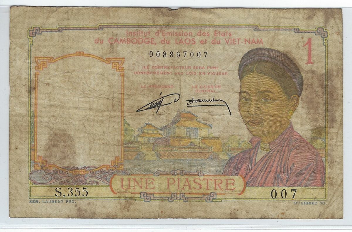 INDOCHINE (Cambodge-Laos -Viet-Nam) 1 PIASTRE SERIE S.355 ND 1953 TB+
