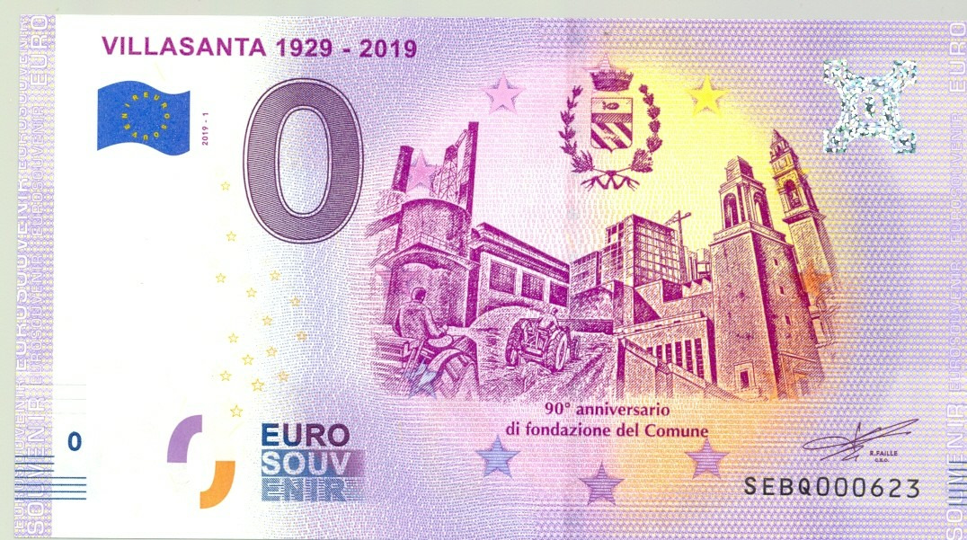 ITALIE 2019-1 VILLASANTA 1929-2019 BILLET SOUVENIR 0 EURO NEUF