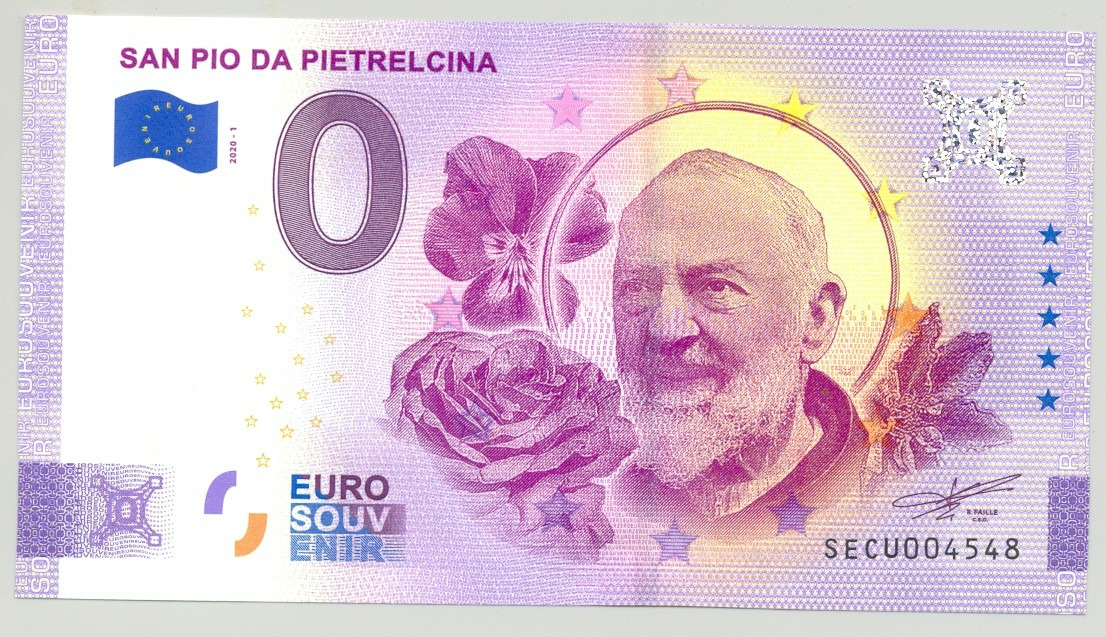 ITALIE 2020-1 SAN PIO DA PIETRECILNA VERSION ANNIVERSAIRE BILLET SOUVENIR 0 EURO TOURISTIQUE NEUF
