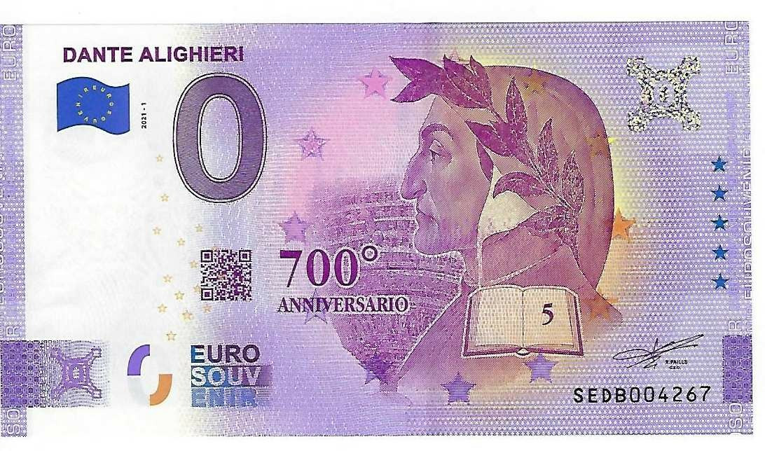 ITALIE 2021-1 DANTE ALIGHIERI V ERSION ANNIVERSAIRE BILLET SOUVENIR 0 EURO TOURISTIQUE NEUF