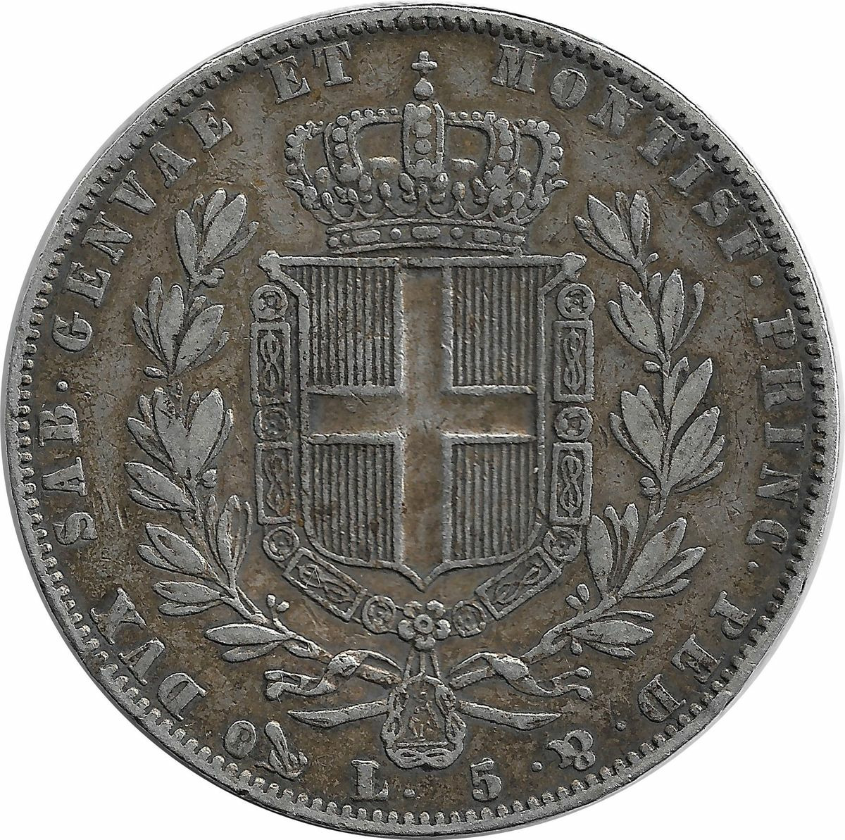 ITALIE 5 LIRE SARDAIGNE 1845 P (GENES ANCRE) TTB-