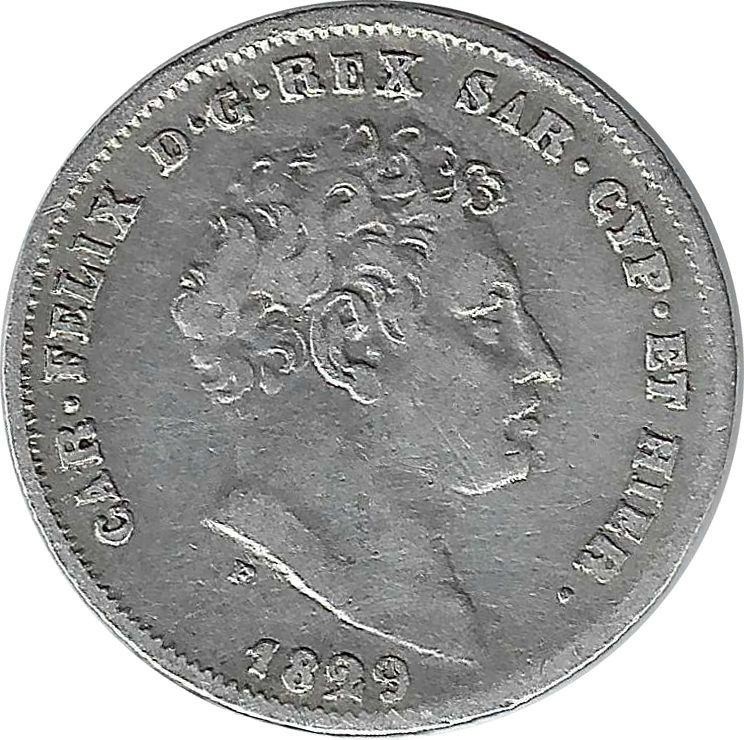ITALIE (SARDAIGNE) 25 CENTESIMI 1829 FP (Gênes) TTB