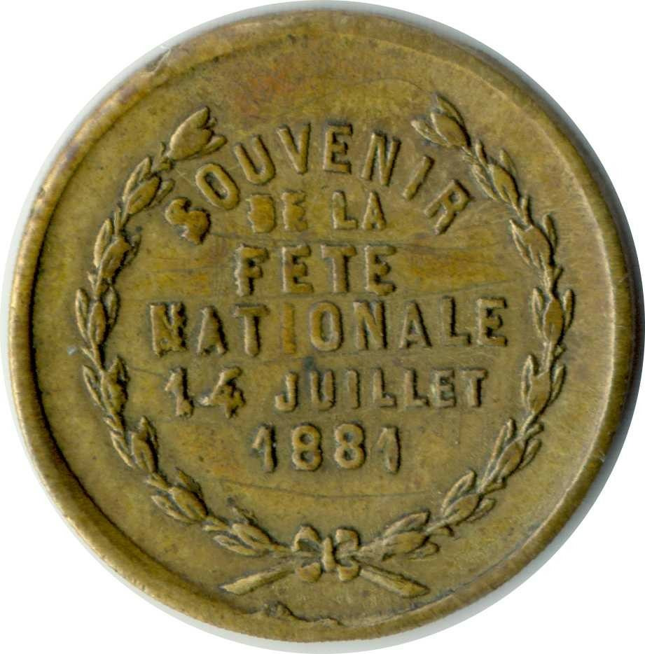 JETON - SOUVENIR DE LA FETE NATIONALE DU 14 JUILLET 1881 TB+