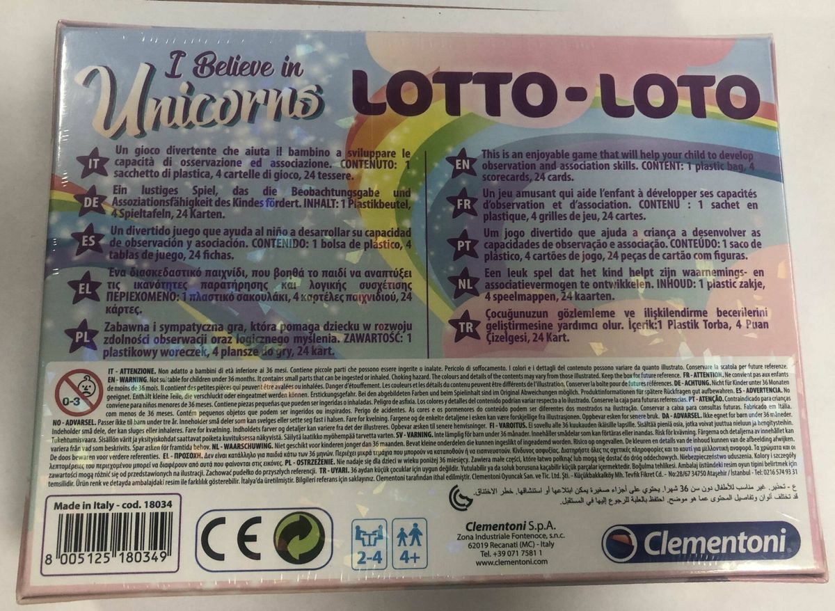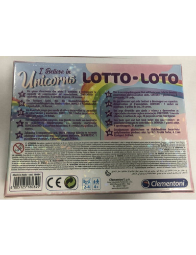 JEU LOTTO-LOTO LICORNE I BELIEVE IN UNICORNS de chez CLEMENTONI