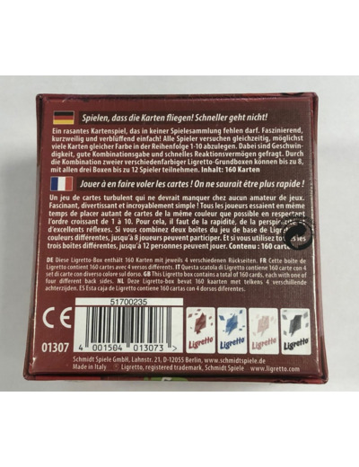 LIGRETTO JEU DE CARTES BOITE ROUGE DE CHEZ SCHMIDT BOITE NEUVE