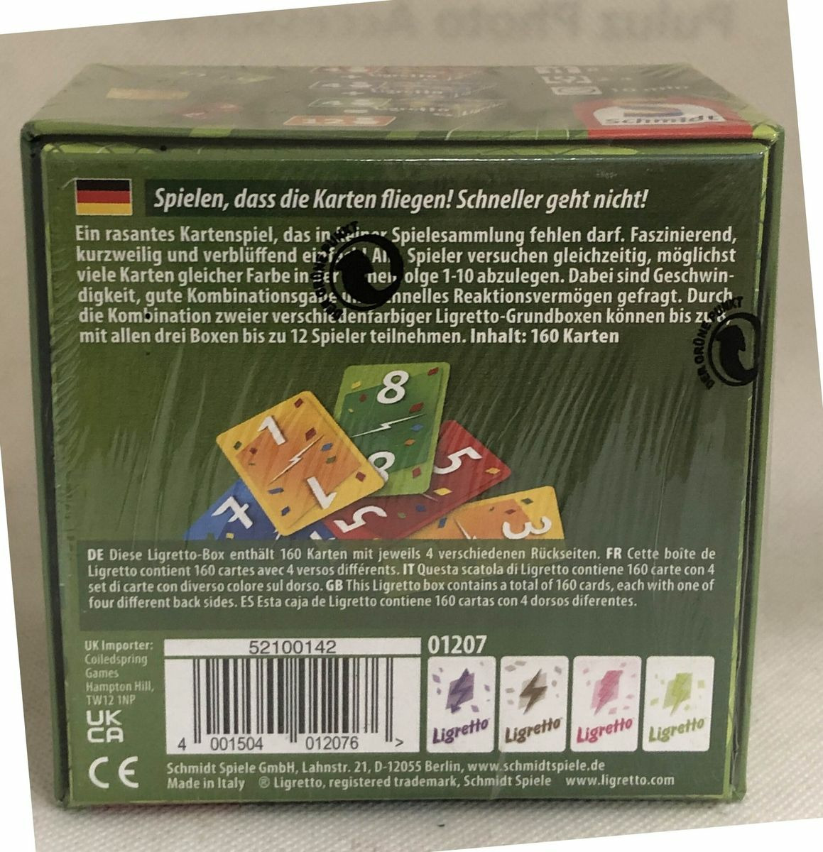 LIGRETTO JEU DE CARTES BOITE VERTE DE CHEZ SCHMIDT BOITE NEUVE