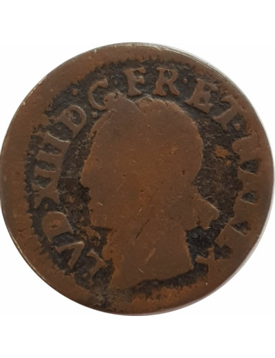 LOUIS XIII (1610-1643) DOUBLE TOURNOIS 1643 K (Bordeaux) B+