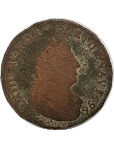 LOUIS XIV (1643-1715) LIARD DE FRANCE 1696 X (Amiens) 3gr38 TB+