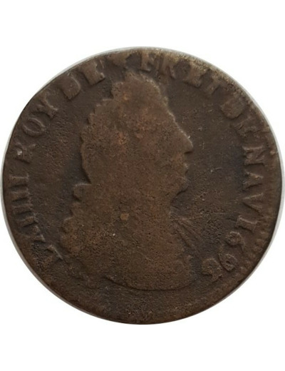 LOUIS XIV (1643-1715) LIARD DE FRANCE 1696 X (Amiens) TB